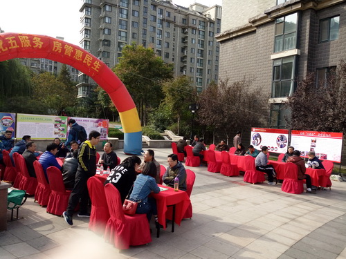 活動(dòng)當(dāng)天,市局參加活動(dòng)各單位及各區(qū)房管局房管維修熱線(xiàn)的工作人員向參加活動(dòng)的業(yè)主發(fā)放宣傳材料,進(jìn)行政策宣傳和解答,接受群眾的咨詢(xún),發(fā)放明白紙等政策宣傳材料。房管局丁寧書(shū)記、張恒志副局長(zhǎng)、李剛副局長(zhǎng)等領(lǐng)導(dǎo)親臨現(xiàn)場(chǎng)接受社區(qū)業(yè)主的咨詢(xún)及建議,銀豐地產(chǎn)集團(tuán)有限公司總裁趙培勇、銀豐物業(yè)管理有限公司董事長(zhǎng)米文斌、銀豐物業(yè)一中心總經(jīng)理沈洪祥、副總經(jīng)理韓小華等相關(guān)領(lǐng)導(dǎo)陪同參加了宣傳活動(dòng)。