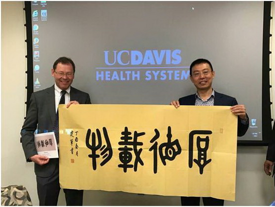 2017年5月4日,銀豐集團(tuán)王偉總裁一行8人由薩克拉門多市中國代表處首席代表容承澤先生陪同,訪問美國加利福尼亞大學(xué)戴維斯醫(yī)療(以下簡稱“UCD”)。