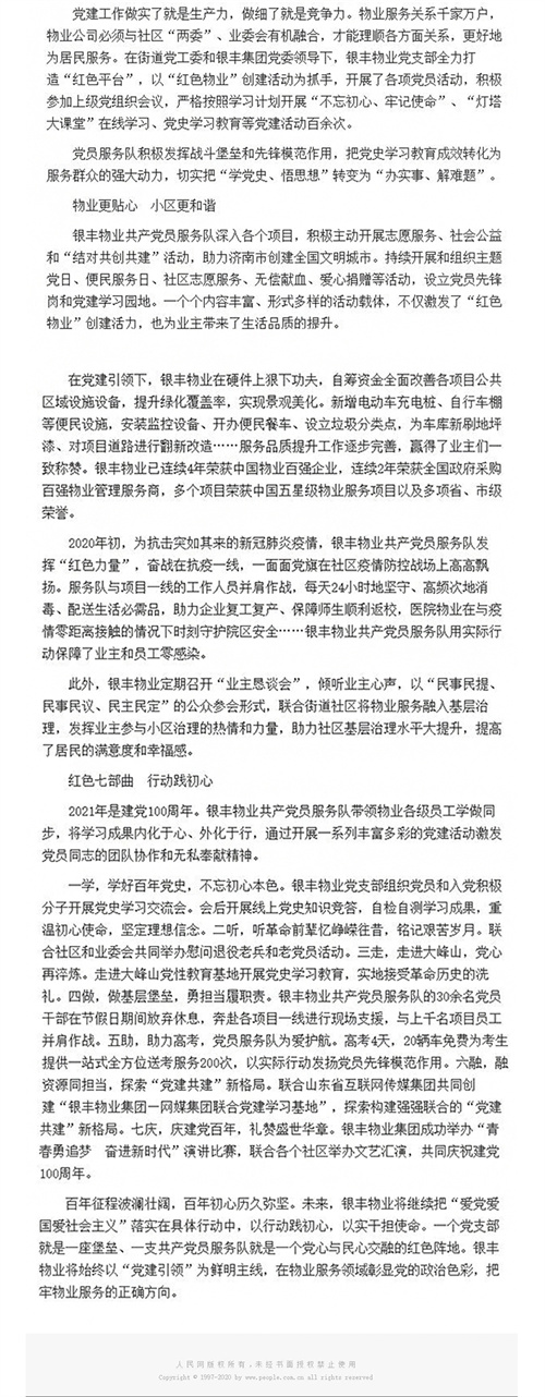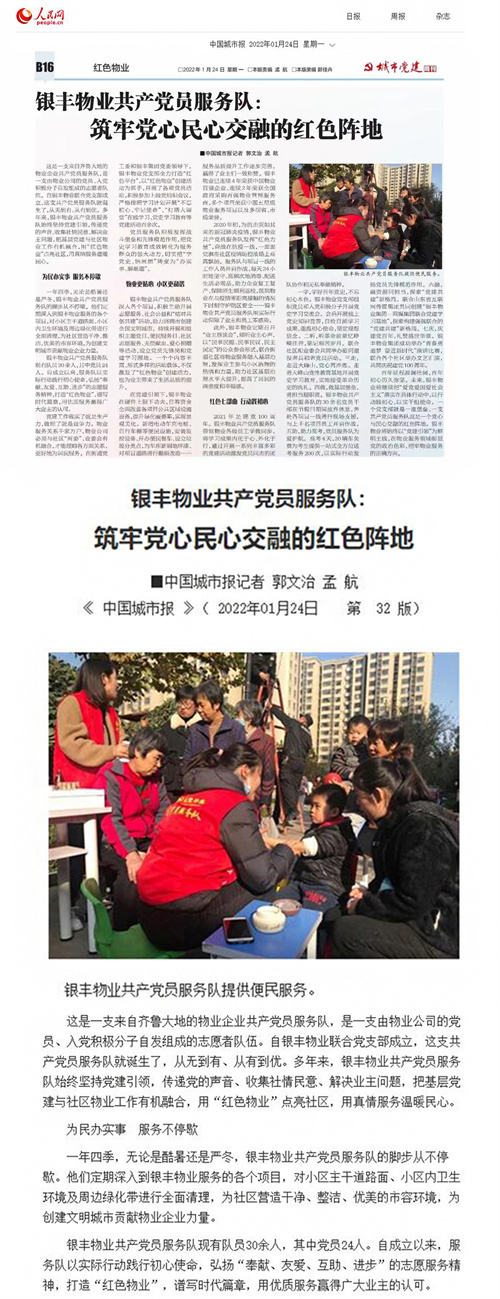 人民網(wǎng):銀豐物業(yè)共產(chǎn)黨員服務隊 筑牢黨心民心交融的紅色陣地